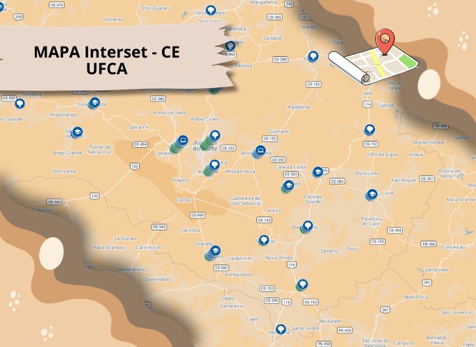 Este mapa georreferenciado foi desenvolvido para visualizar, de forma estratégica, o espalhamento progressivo das ações dessa rede. Mais do que um registro estático, a ferramenta ilustra a evolução da dos projetos da UFCA que compõem a rede no decorrer da execução, conectando as atividades já consolidadas ao planejamento futuro das atividades na região.