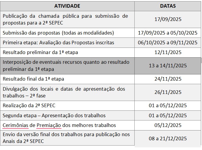 A interposição de recursos deverá ser feita por meio de formulários específicos, disponibilizados no site da 2ª SEPEC (acesse aqui) conforme datas indicadas no cronograma desta chamada.